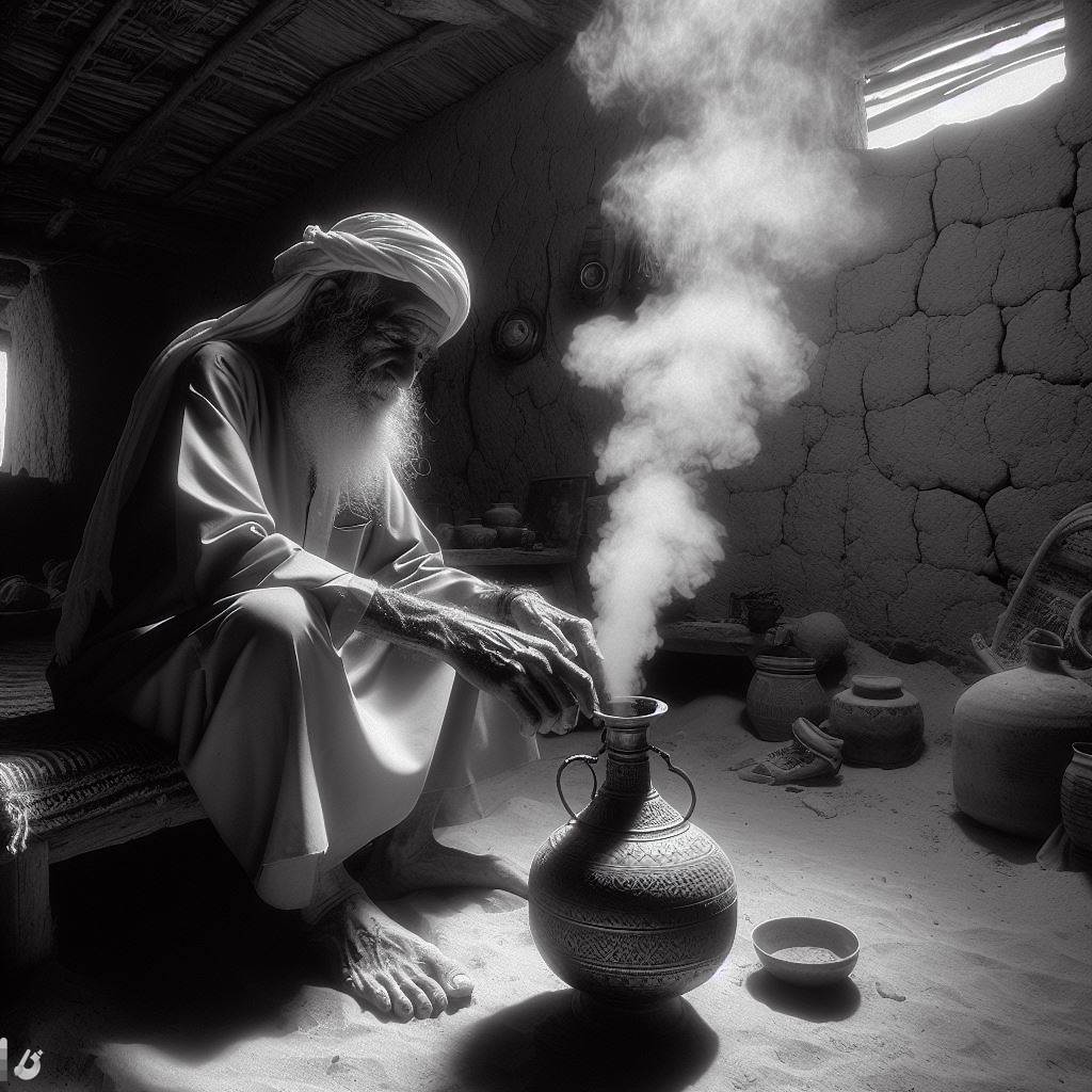 The column of smoke seemed to burst for a moment as the spirit interrupted, “Arise, Amal, do not prostrate before me, as I would not prostrate before you. Tell me that which you would desire and it shall be.”