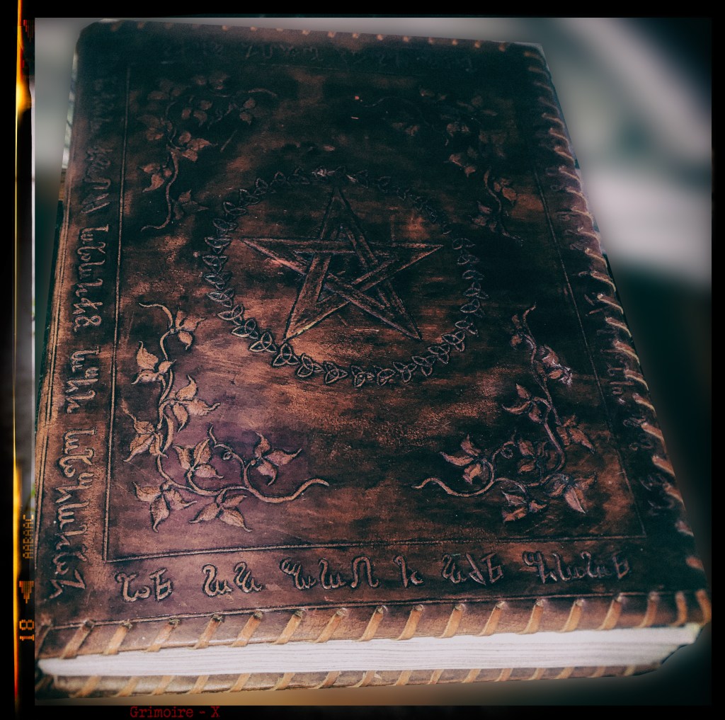 Although these notebooks contained an eclectic mix of poetry, songs, notes, quotes, insights, dreams I decided to create a fully fledged ‘Book of Shadows’ dealing only with writings concerning ‘The Craft’. Although many of these were in A4 sized books, most were burnt. I decided to buy a bulky journal from a shop in Glastonbury. the paper was recycled, a bit rough, not ideal for writing in fountain pen being my weapon of choice’ and the front cover was a bit contrived, anyway in no time I filled the whole thing up, much of the material was from sources such as Pagan Rituals, and lots of edits from grimoires ~ Abramelin, Dragon rouge, Petite Albert etc as well as information concerning herbal craft ~ Verdant Gnosis. I also copied surviving works from those A4 ‘grimoires’ I had ritually burnt, that I could remember or more exactly were imprinted upon my psyche.