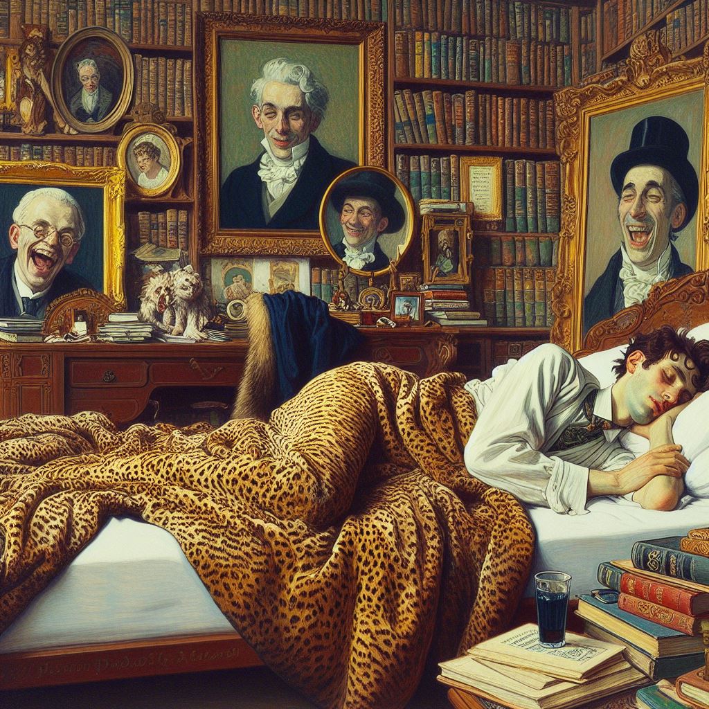 Our Dandy is in bed, his head is swimming a little from the fine cocktail party he had been to where he had swanned over how marvellous he was and offered nibbles of ‘fascinating artefact’ stories, two of those present were members of the Insulters, they couldn’t wait to tell the others in the circle of the cocktail evening experience.