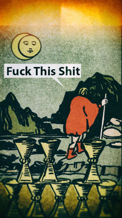 The book includes colourful scans of Mr Tusks own deck of cards- major arcana, and if that excites you, its printed again, each card to a full page later on. So if you take away those unnecessary pages and the spreads, which are all spelled out and learnt in our foremost reading material when we had teenage acne and the summers lasted forever, there’s not much shiny material left for the magpie to lust after.