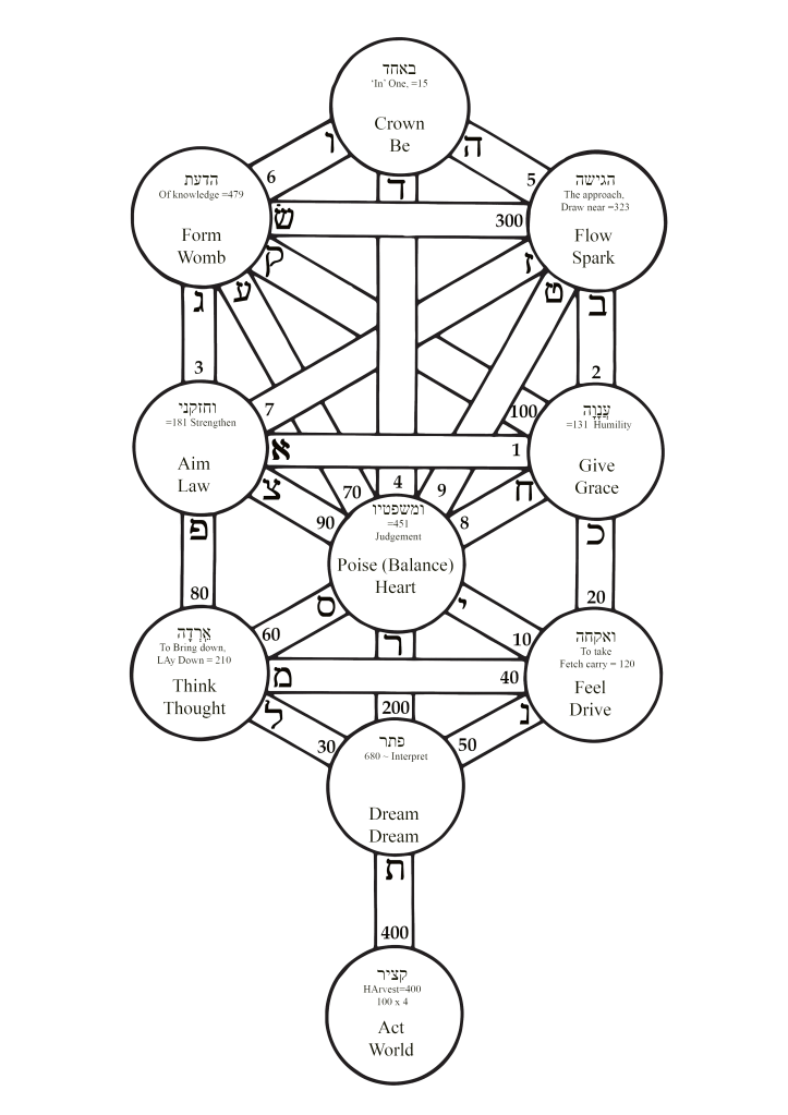 I crafted Rumi’s puzzle. A Noun and a Verb to each sephira but I would do it of one syllable for I wanted to parody and condescend, to show off perhaps, to go one better than Rumi’s task. To wade in the water than walk across the bridge.